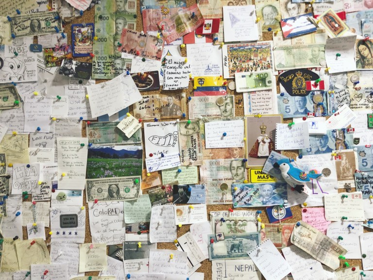 We stopped for lunch at what quickly turned into my favorite cafe yet (La Fuente, RabΓ© de las Calzadas). We walked in and instantly noticed the entire wall was covered in notes, international money and memorabilia from all over the entire world. Upon sitting down, the owner approached us and eagerly asked where we were from, “Colorado; USA,” we responded. I walked past him in the hallway a few minutes later and he excitedly pointed out the spot where notes from two fellow Coloradoans were – he clearly knew this wall like the back of his hand, it was his pride and joy. My friend brought along a handful of Colorado postcards and we instantly knew he was a worthy recipient. We presented the Rocky Mountain postcard to him, and after signing it per his request, he went directly to his wall and spent the next several minutes meticulously rearranging his masterpiece. It was the effort I put into my bedroom walls in high school, times a million. After incredible food and service, we were ready to get back on the trail, but before we left he proudly drug us over to the wall so we could see where all three Colorado notes were displayed together (see photo below).