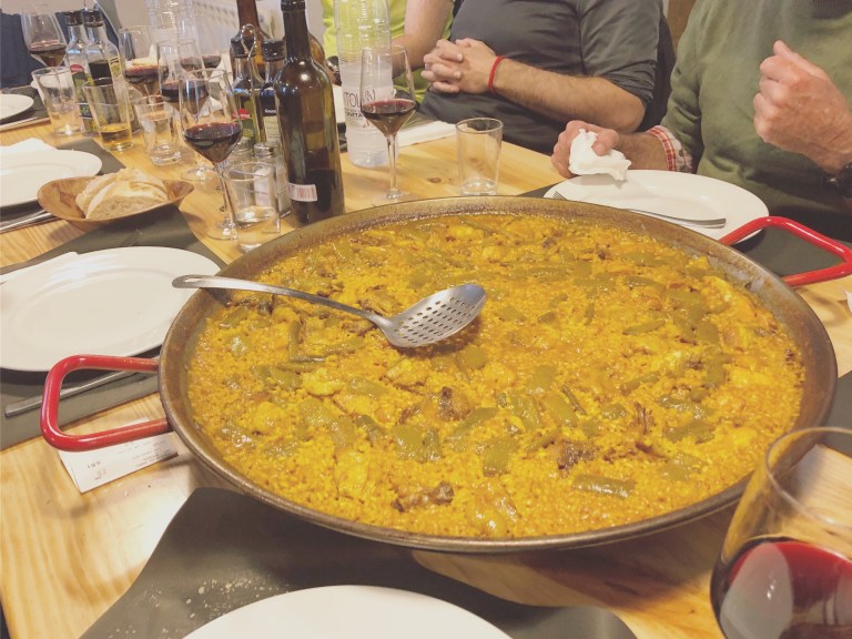 For dinner, we opted in for the community dinner at our albergue. I was surrounded by three Germans and a man from Latvia. The man from Latvia was surprised I knew about Latvia, let alone had been to it. We had a great talk. The Germans, one of which I had walked several miles with a few days back, politely stifled laughter as I attempted to speak to them in German and listened to me reminisce about my childhood trips to Germany, including the “spaghetti eis” (a dessert that looks like a plate of spaghetti) my sister and I were obsessed with when we visited Germany in our childhood. And then there was the paella .. I don’t have words, just check out that photo (above). Oh, and three of the twelve people at our table were in their seventies.