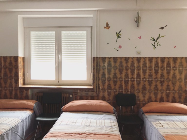 A large group of people arrived at our albergue at the same time the two of us arrived this afternoon. After we were all checked in, we were led upstairs past several warm and well lit rooms, each named after a different country. As our host opened the door to what was supposed to be our groups (appropriately named) “España” room, it quickly became apparent there had been a mix-up. Spain was a few beds short. Our host became evidentially flustered. She led us back down the stairs to a uniquely adorable but darker, cold, back corner room named “Oceanía.” It was clearly an overflow room and one they didn’t intend to use tonight, but we thought it was hilarious. We’ve embraced it and speak fondly of our little “ocean.”