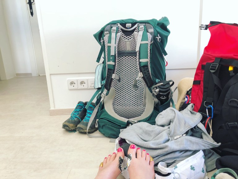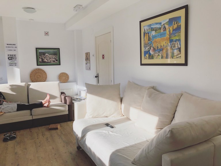 Pasta for breakfast (and judgement from some of our international friends). Buying a fanny pack and saying the words “I’ve never been this excited about something I don’t need,” turns out I kind of needed it. Cold but not a single drop of rain. Pretty views and flat terrain. The longest stretch of trail without a town that we’ve encountered yet. The day we passed the halfway point to Santiago (not entirely sure how I feel about that reality). All sorts of quality conversation, including the comforts of home we’re beginning to miss (because over a month of walking all day and a different bed every night wears on you). Beaming when we walked into our albergue and realized we’d scored the jackpot value-wise. A private room with comfortable mattresses, an outlet for each of us and a door that locks (it’s the little things). A shower where wearing shoes didn’t feel necessary and it had a ledge for our shower beers. Freshly painted toes and duct taped feet. Wifi decent enough to face-time my parents. Reading poetry in a sunroom. A sunroom. Splurging on a massage (because, the hostel has a massage therapist, to celebrate the halfway mark and because “splurging on a massage” in Spain is still significantly cheaper than America. Side note: she didn’t speak English, but the phrase “ay yi yi” was said countless times throughout, if that’s any indication of how I’m holding up). Leaving my toothbrush in the bathroom over night because turns out we’re the only ones using this bathroom (see above comment about “comforts of home,” once again, it’s the little things). And falling asleep on a comfortable mattress with a mug of tea nearby and my passport and wallet not underneath my pillow (for a third time, it’s the little things).