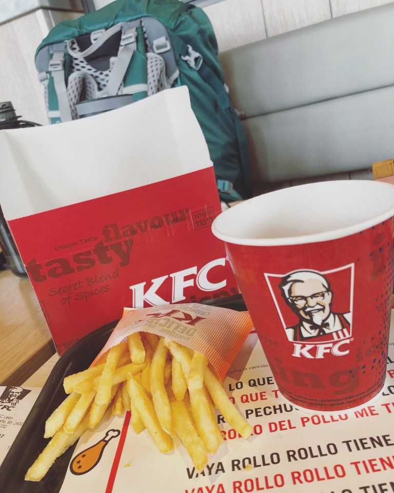 We trekked into León, our last “big city” before Santiago, today by way of KFC. We couldn’t help it and thanks to the present language barrier we ended up with every type of potato on the menu. (If I’m being honest this even happens to me without language barriers .. I was at a diner in Seattle with some friends last summer and our waiter misunderstood my order and brought me a baked potato with hash browns. And then a random reporter asked to interview us about “diner culture” and that’s how the tale of my potato mishap ended up in Seattle Weekly). 🤷🏼‍♀️