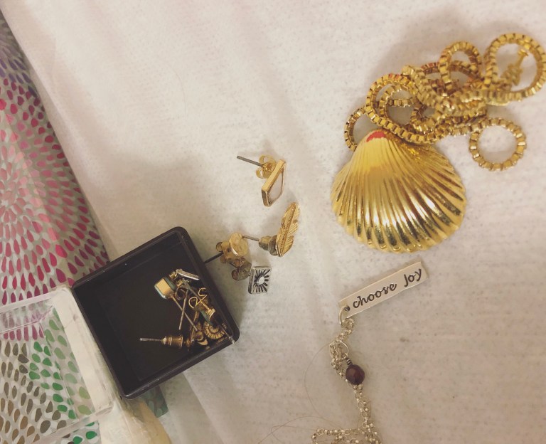 🎒:All I initially intended to bring on this trip jewelry-wise was a single pair of earrings. I mentioned this to a close friend who asked what I still needed for my trip and she brought me approximately five hundred options. We narrowed it down to six. Then my friends mom gave me the pictured “choose joy” necklace. And upon learning the symbolism of the scallop shell in el Camino (short version: it’s a metaphor for all of the different routes leading to one place and used as a trail marker along the entire way), my own mother gave me what she called “one of her favorite necklaces” the day before I left. I didn’t need to bring any of them, but it’s been a nice treat adding variety to my repetitive wardrobe (and bonus, they match my gold duct taped toes).
