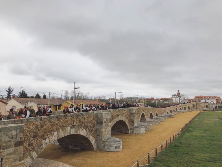 As we stumbled upon a town called Hospital de Orbigo, we found hundreds of individuals exquisitely dressed. We soon learned that they were getting ready for a dance ceremony that takes place once a year on what is the longest bridge on the camino. We were there in time to cross the bridge (we have since heard of several ‘peregrenos’ who got stuck on the opposite side of the bridge well into the afternoon) and find a nice balcony where we sat, observed and drank warm drinks before continuing on our way.