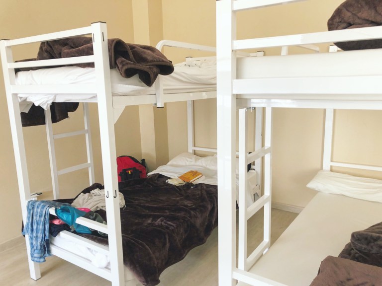 Albergue Lemos, 9€. This place has the most beautiful balcony and the big fuzzy blankets make up for the shower drains being slower than the shower. (We collectively almost flooded the bathroom, oops!)