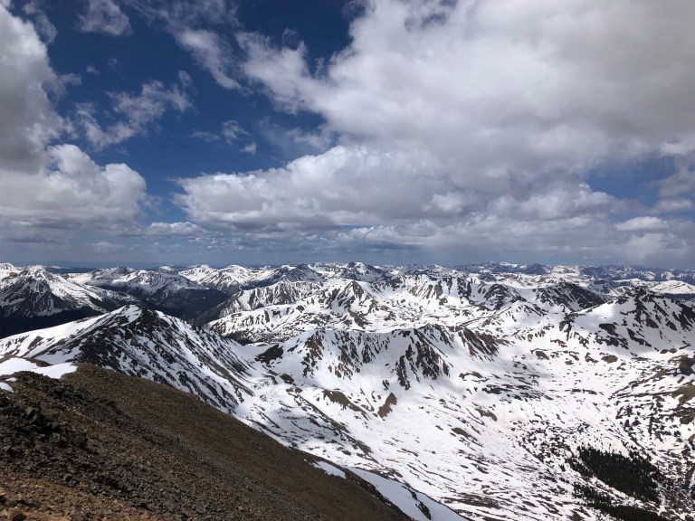 I admittedly didn’t know much about 14ers before this summer began. I had climbed twelve comparatively “easy” 14ers and I had a general idea of a few of the peaks I hadn’t done. I knew I had some long drives ahead of me. I also knew that generally mid-June to early-September is what’s considered 14er season due to snow levels. For this reason, I anticipated I would begin my hiking endeavors mid to late-June. On a whim, I began researching trail conditions of some of the 14ers I had heard might make decent early-season climbs. That search led me to the discovery that most 14ers in Colorado, especially those in the Sawatch Range, already had “summer conditions” due to minimal snow this year. Suddenly, my hiking plans were expedited and my leg pain forgotten. I immediately texted the adventure friend I mentioned in my Quandry write-up, the closest thing I’ve ever had to a brother, and asked what his chances of getting the upcoming Wednesday off of work were. Turns out, he already had it off for plans that had fallen through. Just like that, we had plans to hike Colorado’s highest peak before the end of May.