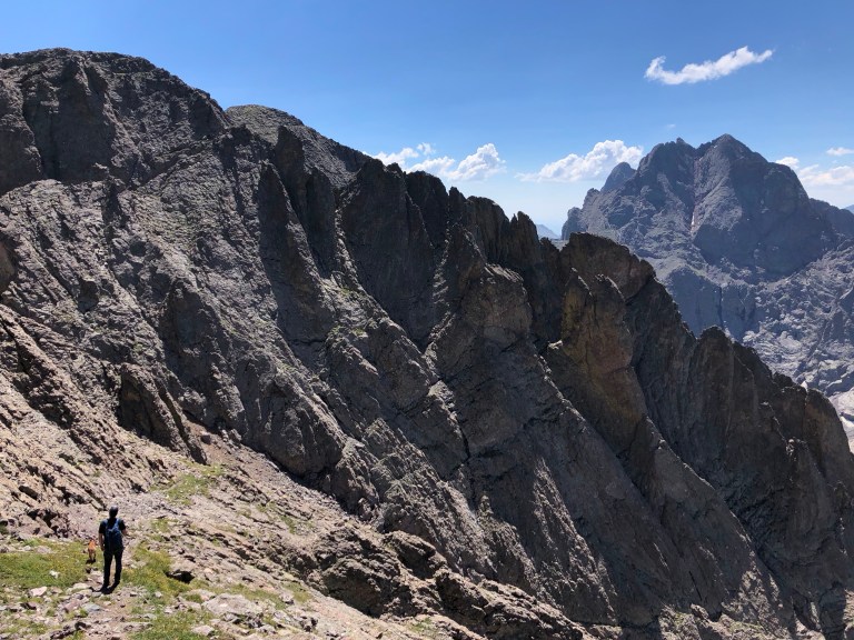 Challenger Point is, appropriately, a challenge. It would be with or without leg pain. It took us a comparable amount of time to hike the final 1.5 miles as it did the first 5 miles. Upon summiting, we continued on to Kit Carson Peak. The Kit Carson “avenue” is a beautiful portion of trail that wraps around Kit Carson and leads you to summit from the south side, not without its own final strenuous push. I was slow and my gracious friends were patient, but we did it. All three of us. And the dog.