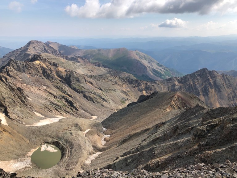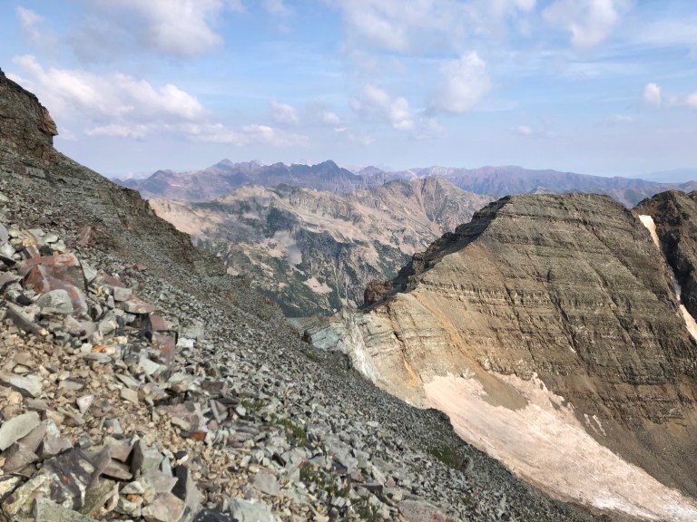 Conundrum Peak is one of a handful of four ‘unranked 14ers’ due to its proximity to Castle Peak. That being said, the trek between the two was no easy feat. We scrambled between the two, being ever aware of our footing. My favorite part of standing on Conundrum was looking back at where we had previously stood on top of Castle Peak. It looked like a giant. I added both mountains to my list of mountains I’d miss (and tried some kangaroo jerky another hiker offered me) before we began our trek back to the truck.