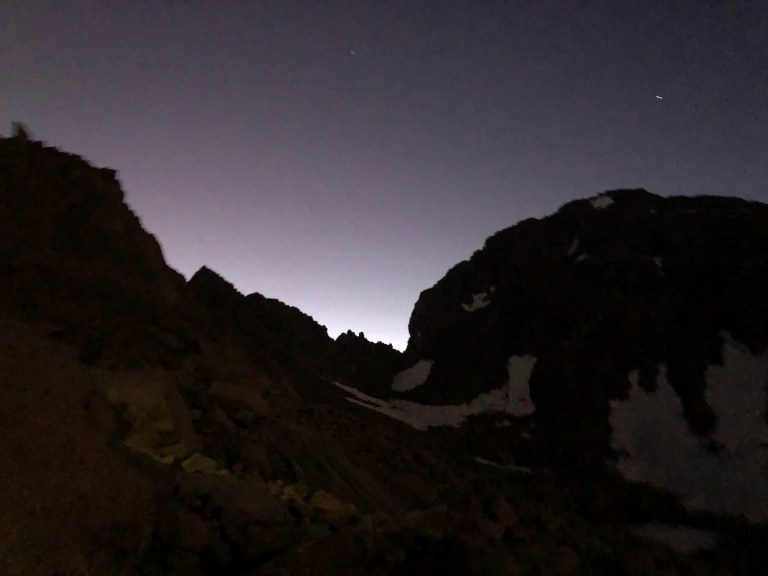 We all convened at 4am that next morning and began what we knew would be a long day, should we be successful with our plan. We agreed to start with Sunlight Peak and we reached the top of the final stretch and the prominent gully as the sun appeared. It was beautiful, but my hands were so cold I could hardly focus. I had been working to keep them warm leading up to that moment, but obviously unsuccessfully. I sat there watching the day begin with tears in my eyes and my hands in my armpits, welcoming the warmth the sun would soon bring.