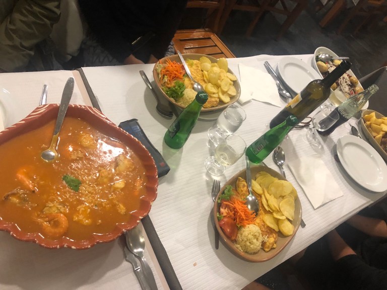 Again, I’ll bring up my last Camino to say that on that trip I prided myself on the fact that I went an entire month of my adult life without getting in a motorized vehicle. That record went out the door tonight as the seven of us piled into a taxi to head to dinner a few miles away.