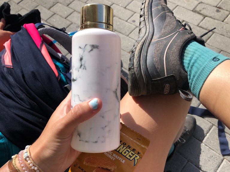 My feet are faring fairly well this time around, probably thanks to the fact that I have finally accepted that I have wide feet and should purchase shoes accordingly (thanks, Keens). I don’t have the awful blisters on my pinky toes that I developed early on last year; just a tiny painless bubble on the bottom of my left foot. That being said, what I lack in foot pain I’ve made up for in my perpetual achy lower back and right hip pain. I’d take the blisters any day.