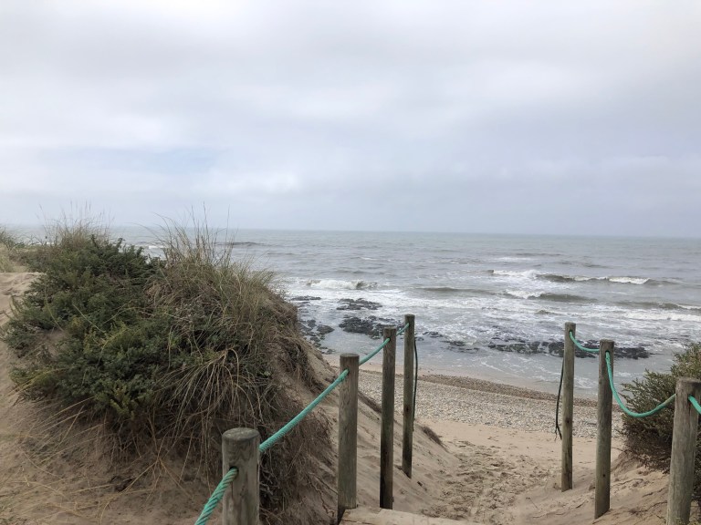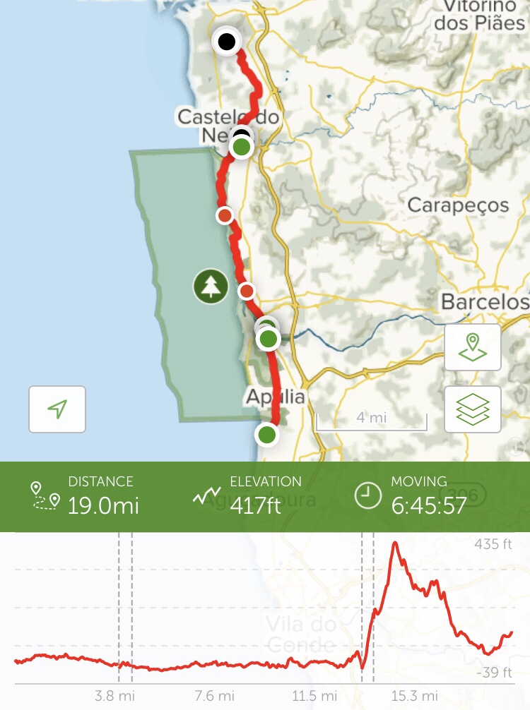 The day continued on along the coast, over cobblestone and past branches of grape vines hanging in the trail. We talked of religion and our families and work, amongst other things, to pass the miles (or kilometers, rather).