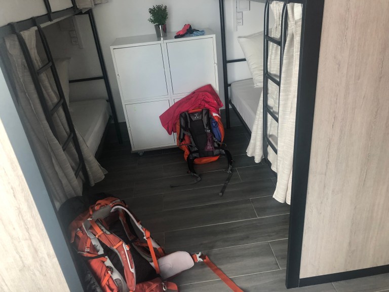 Our laundry didn’t dry last night, so the first order of business today was to rig all of our wet clothes to the outside of our packs to allow them to dry better. I had done the most laundry and therefore had the most decorated backpack; super hilarious looking, mildly efficient.