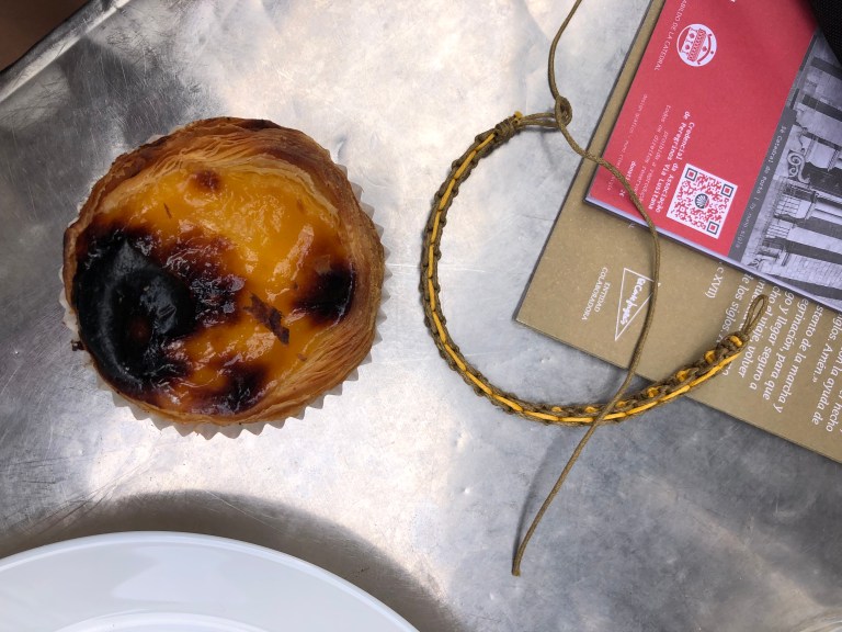 Pastal Nata, a local pastry filled with custard. It is delicious and especially popular in Portugal. This picture also features my new bracelet.
